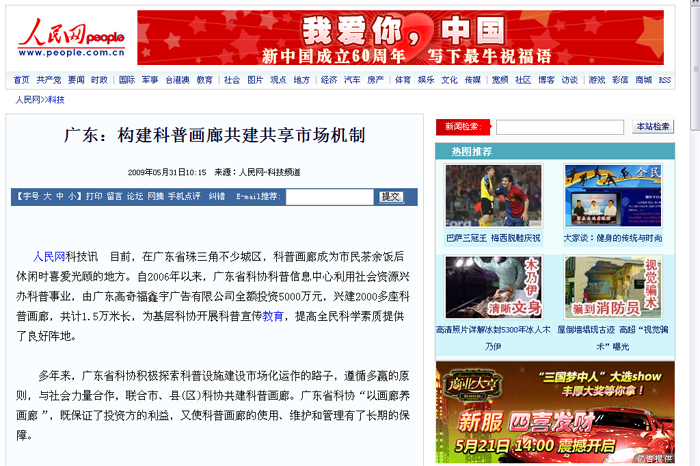 人民网报道广东科协建科普画廊工作