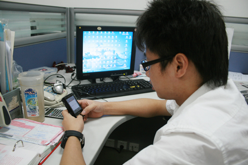 公众利用手机访问省科协wap网(黄淑曼 摄)