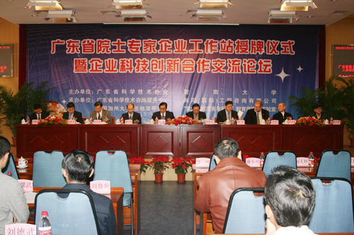 2009年12月22日上午,由广东省科协和暨南大学主办的“广东省院士专家企业工作站授牌仪式暨企业科技创新合作交流论坛”在广东科学馆隆重召开。省政府副秘书长李捍东,省科协党组书记、副主席梁明出席活动并作重要讲话。中国科协科技咨询服务中心主任盛小列,暨南大学校长胡军,省科协党组成员、副主席吴焕泉等领导同志出席活动。