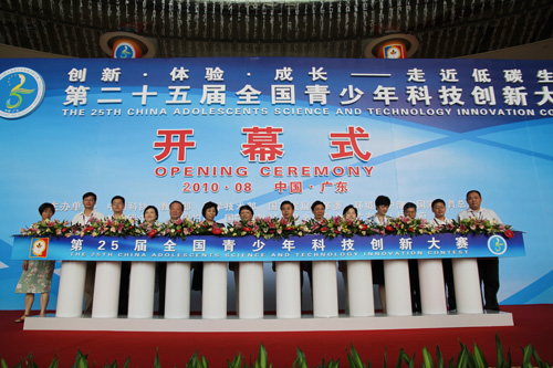 8月9日,由中国科协、教育部、科学技术部、国家发展改革委、环境保护部、国家体育总局、共青团中央、全国妇联、国家自然科学基金委员会、广东省人民政府共同主办的第25届全国青少年科技创新大赛在广州市广东科学中心隆重开幕。中国科协常务副主席、党组书记、书记处第一书记邓楠,广东省委副书记、省长黄华华,国家教育部副部长陈小娅,团中央书记处书记罗梅,广东省副省长宋海等主办单位的领导、嘉宾出席了开幕式。