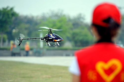 在东源县人民广场上空,一架遥控飞机在自由自在地飞翔,一会儿盘旋着向上空飞行,一会儿又快速俯冲下来,一会儿接着又上下转圈……这是“三下乡”活动中广州市越秀区少年宫进行航模表演的一个场景。据了解,这些航模仅200克,但在人的遥控下却能表演各种高难度动作。其后的遥控直升飞机表演,也吸引了众人的围观。当螺旋桨到达规定的转速时,直升飞机“嗖”地一下窜到空中,在天空中盘旋了几圈后慢慢下降;快要接近地面时,又“噌”地一下径直上升……精彩的表演赢得了一片欢呼。