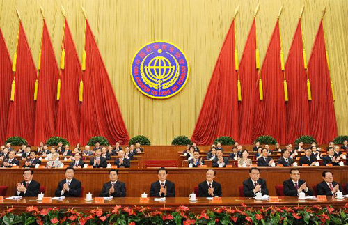 5月27日,中国科学技术协会第八次全国代表大会在北京人民大会堂开幕。胡锦涛、温家宝、贾庆林、李长春、习近平、李克强、贺国强、周永康等党和国家领导人到会祝贺。新华社记者 饶爱民 摄