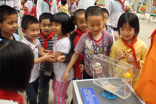 科普大篷车到学校啦!”随着一声呼喊,清远市清新县第三小学的校园顿时热闹起来。同学们纷纷围着科普展品观看,不时提出各种思考及疑问:“汉密尔顿路径究竟如何使路程实现最短呢?”;“如何用小五角星拼出一个大五角星呢?”;“这个陀螺真神奇呀,它其中的科学原理是什么?”……这是广东科学馆“科普大篷车进校园”活动现场的一幕。2010年5月,自广东科学馆科普大篷车正式启动以来,它的足迹几乎跑遍全省,成千上万的青少年从这个“流动的科技馆”中体验到了科学的神奇魅力。