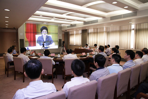 广东省各地分会场认真组织收看会议,图为惠州市分会场