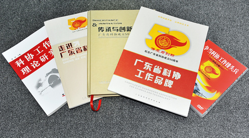 今年是广东省科协成立50周年,省科协将今年定为“科协宣传年”,为扩大科协的社会影响,省科协策划制作的系列宣传品在省科协成立50周年纪念大会时公开亮相,得到了与会领导、参会嘉宾的广泛好评,他们一致认为系列宣传品以识文字、照片、图像全面地记载了省科协50年的光辉历程和取得的巨大成就。