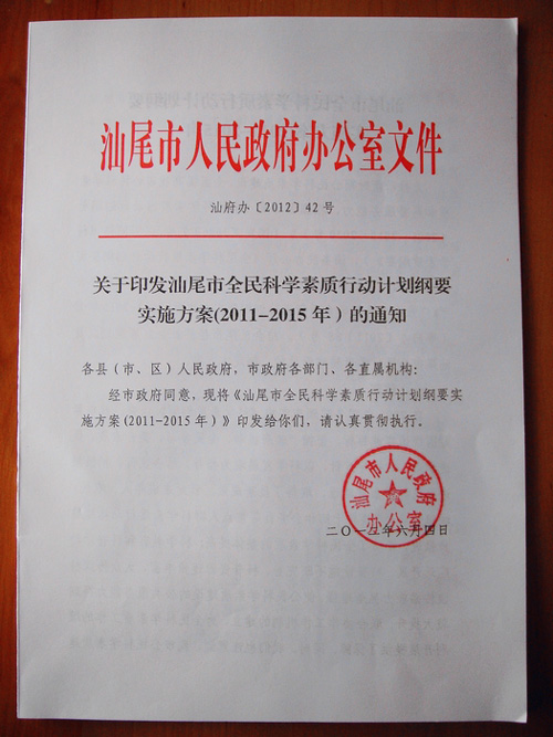 汕尾市印发全民科学素质行动计划纲要实施方案