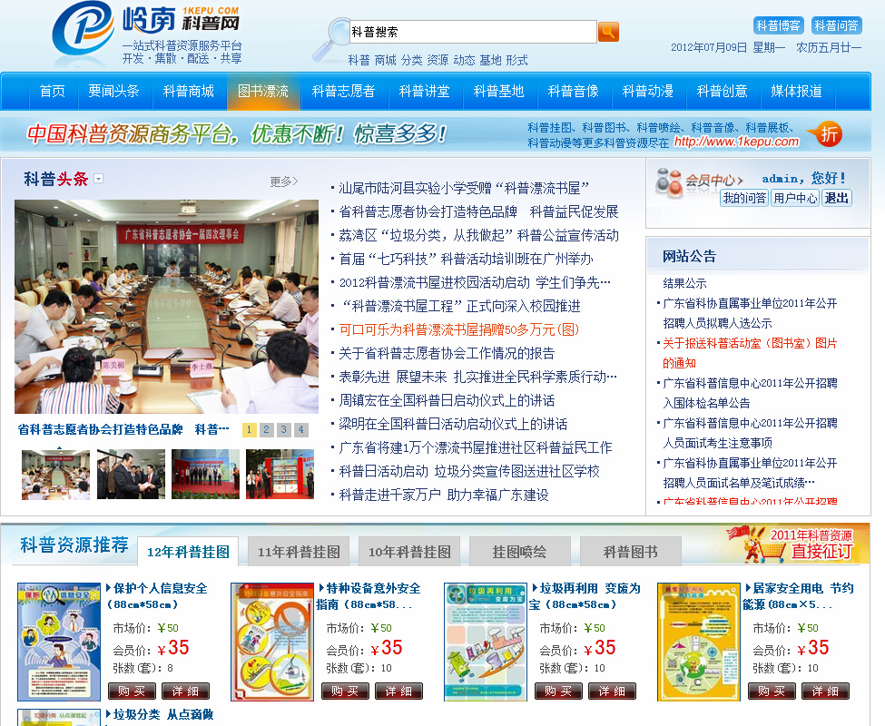 岭南科普网(http://www.1kepu.com/)是省科普信息中心、省科普志愿者协会特别为公众打造的集科普资源开发、集散、配送、共享为一体的一站式科普资源服务网站。岭南科普网包括科普商城、科普志愿者、图书漂流、科普讲堂、科普动漫、科普教育基地、科普创意、媒体报道、要闻头条、科普博客、科普辞典、健康养生、科普资源推荐等栏目。公众通过这个网站,可以学习科普知识和技能,了解最新的科普资讯、科普志愿者服务活动和科普大讲堂的相关内容,可以上传科普资源与大家分享,可以向科普讲师团的专家在线提问,邀请专家讲座等,还可以选购中意的科普挂图、图书、音像制品等科普资源。为推进“科普漂流书屋”工程建设,岭南科普网特别开发建设了“科普图书公益漂流”频道,实现了图书注册登记、交换与漂流、撰写读书心得、跟踪图书漂流轨迹等功能。目前,已注册登记了30000册科普图书,在社区、学校、科普基地等地初步建立了100多座图书漂流服务点,形成了线上线下有效对接的科普图书漂流模式,为公众提供了多样化的科普益民服务。