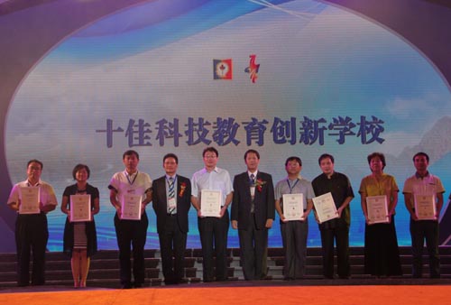 华师附中杨小村副校长(右三)领取全国十佳科技创新学校证书