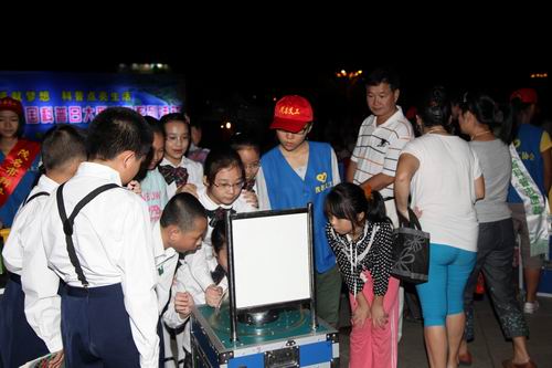 当晚活动精彩纷呈,38个参与单位近120名专家、学者、科技工作者开展现场咨询服务,派发科普宣传资料,开展健康咨询、义诊,群众踊跃参与,热情高涨;科普大篷车载展品展出,吸引了广大群众尤其是青少年儿童的目光,他们亲手操作科学展品,亲身体验科学的乐趣。活动现场还展出了“食品安全与健康”、“防震减灾”、“节约能源资源”等专题的科普展板,科普影视播放以食品安全、防震减灾为内容的科教片,广大市民纷纷驻足观看。茂名市第九小学学生管弦乐队倾情演出营得的现场群众的热烈掌声;现场播放激昂雄壮的科协之歌,把活动气氛推向高潮。市民表示,今年的全国科普日活动搞得非常有特色,内容非常丰富,现场气氛非常热烈,受益匪浅,希望明年能看到更加有特色的全国科普日活动。