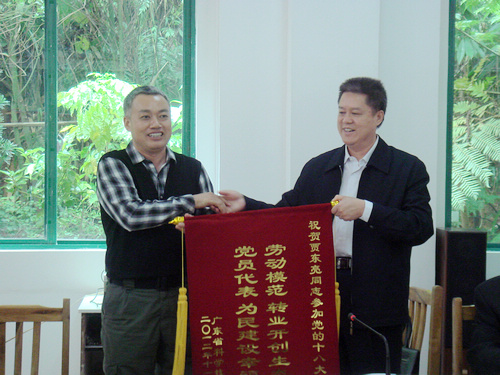 为落实省科协学习贯彻党的十八大精神的工作部署,着力提高践行科学发展观和科协“三服务一加强”的能力和水平,11月23日,省科协党组成员、秘书长杨豪标率领省科协直属机关的党员和工作人员前往广宁县八一生态农场,探访十八大党代表、全国劳动模范贾东亮同志,进行面对面交流学习活动,进一步领会党的十八大精神。