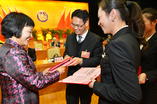 东莞市委组织部长李小梅给连希波颁发主席证书。刘雷 摄