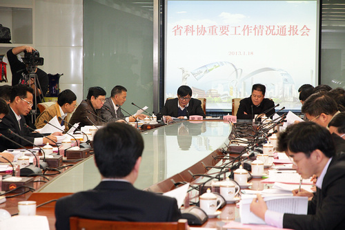 2013年1月18日,省科协召开重要工作情况通报会,通报《关于加强新时期科协工作的意见》出台等情况(张炜哲 摄)