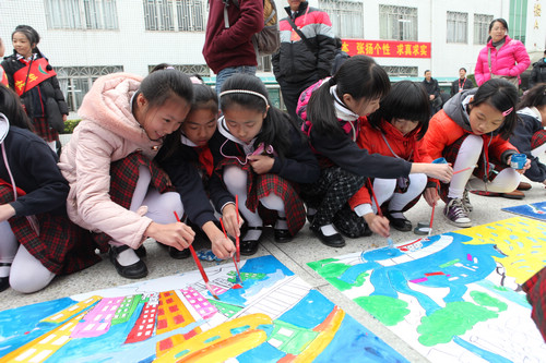 深圳市龙岗区中心小学的同学们在描绘自己梦中的城市