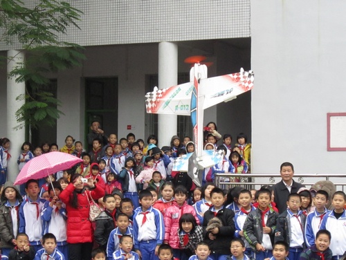 梅州师范学校附属小学师生欣赏航模表演