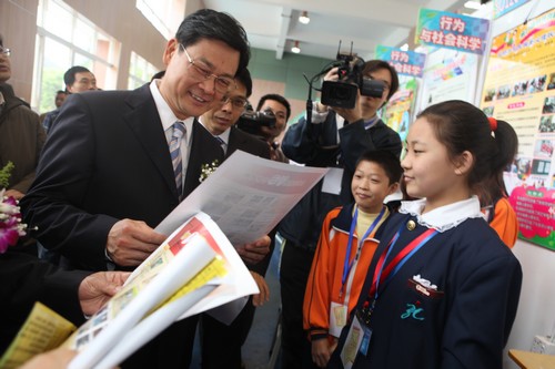 陈云贤副省长与参加第27届省青少年科技创新大赛的小选手交流