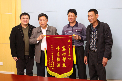 为感谢省科协对樟溪村扶贫开发“双到”工作的支持,2月1日上午,河源半江镇镇委肖衍钦副书记带领镇委、樟溪村两委一行拜访省科协,送上锦旗和感谢信。省科协党组成员、副主席汤世华率直属机关各部室负责同志和各直属单位有关同志,热情接待来访的半江镇镇委的同志们和樟溪村的乡亲们,并举行了座谈会。