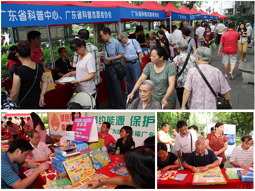 其中,在2008年9月20日,广东省、广州市“全国科普日”活动暨“万人科学传播大行动”在广州市越秀区英雄广场正式启动。活动以“节约能源资源、保护生态环境、保障安全健康、建设创新型广东”为主题,科普文艺表演、科普知识有奖问答、科普宣传图片展示等多种形式,向广大市民进行科普宣传。活动现场还有来自省市40个科研院所、学会(协会)的80多名专家就广大市民所关心的能源、环保、卫生、健康、安全等相关问题进行现场咨询和解答。