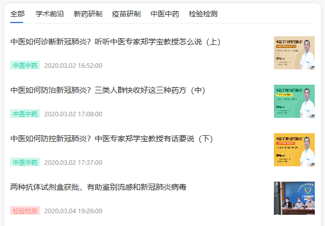 “科技进展”栏目从学术前沿、新药研制、疫苗研制、中医中药、检验检测等方面,向大家第一时间传递最新科研资讯。
