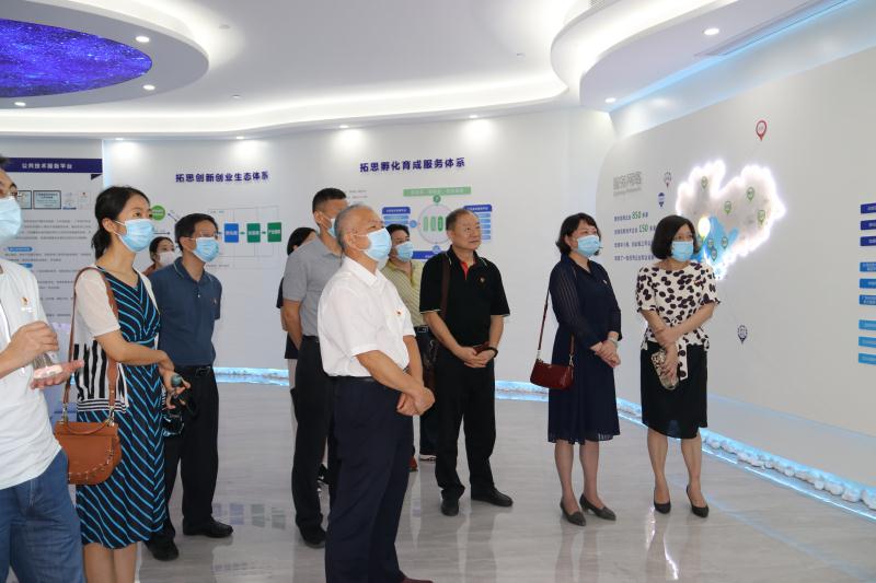 在软件科学园,深入了解园区建设和广东拓思软件科学园有限公司发展历程和取得的成功经验,并与园区负责人、党员、科技工作者代表就“增强科技工作者政治引领和政治吸纳”专题进行座谈交流。