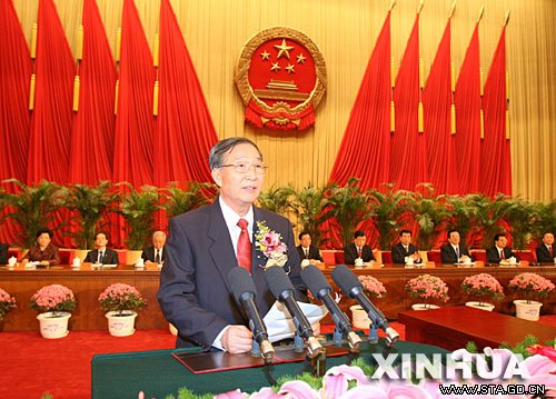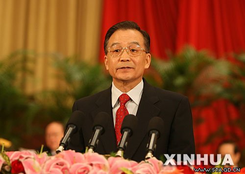 温家宝代表党中央、国务院在大会上讲话。新华社记者 鞠鹏摄