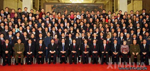 2月27日,2006年度国家科学技术奖励大会在北京人民大会堂隆重举行。党和国家领导人胡锦涛、温家宝、曾庆红、李长春等出席大会并为获奖代表颁发奖励证书。会前,胡锦涛等党和国家领导人会见获奖代表并合影。 新华社记者 李学仁摄
