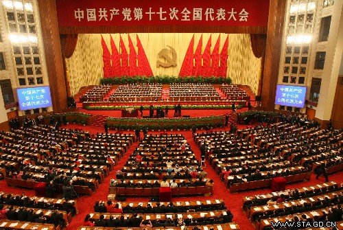 10月15日,中国共产党第十七次全国代表大会在北京人民大会堂隆重开幕。新华社记者 李涛 摄