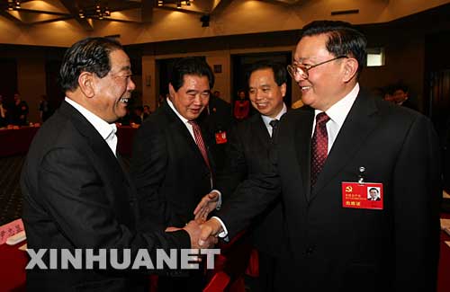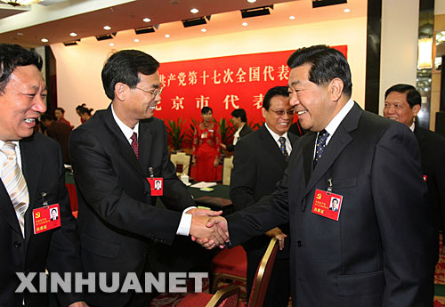 10月16日,贾庆林同志参加十七大北京代表团讨论。新华社记者马占成摄