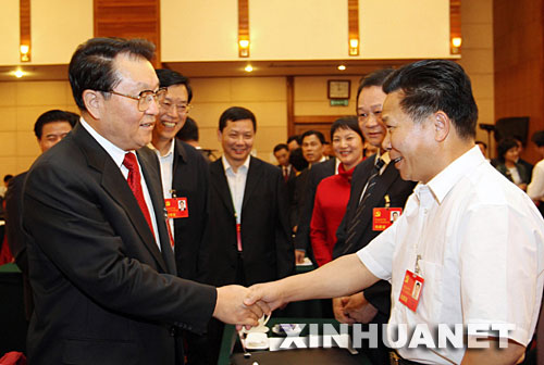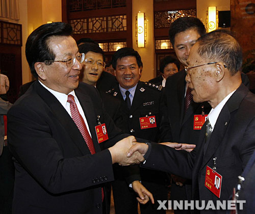 10月15日,李长春同志参加十七大广东代表团讨论。新华社记者饶爱民摄