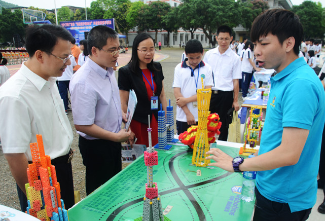 活动中,机器人创客科普体验和3D打印技术展示体验区,围绕着不少粉丝。省科普中心陆朝光主任、恩平市委常委关凯宁等领导标示,这种推广模式对青少年成绩的提升和创新能力的培养起到积极的促进作用。希望此科教产品能在江门市得到推广及应用,让更多的校园师生受益!乐同创客基地的负责人告诉笔者:“让学生初次接触如何拼装和编程调试,锻炼学生跨学科解决问题的能力,团队协作能力和创新能力,犹如现场的‘广州塔’,独具视觉冲击。”