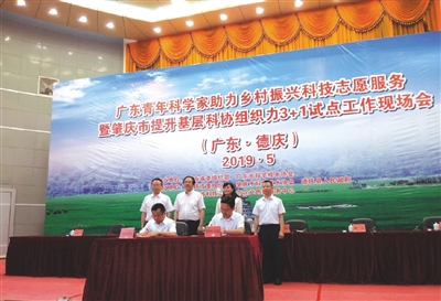 为将科技服务重心下移,加大对基层山区县发展的支持力度,省科协与德庆县在会上签订了“共建科技工作者上山下乡服务乡村振兴试点县”合作框架协议,在全省率先开启探索科技工作者上山下乡助力乡村振兴长效机制。会上还为德庆县5家获批广东省院士专家企业工作站单位颁发牌匾和兑现各50万元的奖补资金支票,为省、市科协和仲恺农业工程学院组织的七支科技志愿服务队授旗。