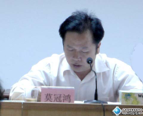 图为化州市府办公室主任莫冠鸿同志主持化州市全民科学素质工作领导小组第一次会议。