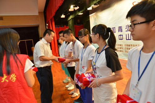 省青少年科技中心主任叶新鹏为中山大学分营的同学颁发证书
