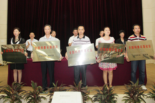 会上表彰了2013年获得“全国科普示范社区”称号的社区并颁发牌匾(张炜哲 摄)