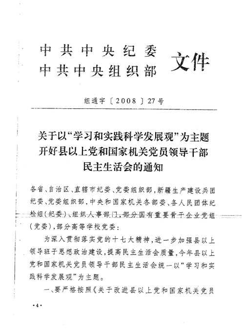 现将《中共中央纪委中共中央组织部关于以“学习和实践科学发展观”为主题开好县以上党和国家机关党员领导干部民主生活会的通知》(组通字[2008]27号)转发给你们,并结合省科协实际提出以下意见,请一并贯彻落实。