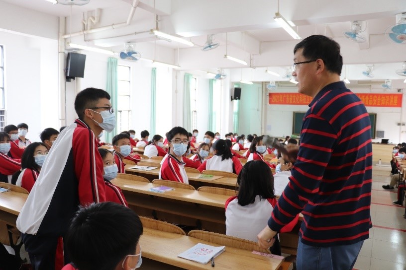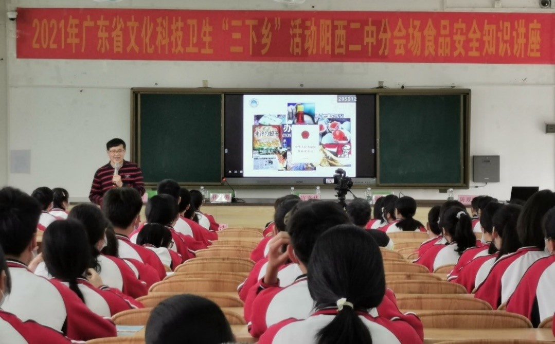 为筑牢食品安全屏障,增强广大学生对食品安全的意识和能力,3月11日下午,广东省食品学会技术专家、华南理工大学食品科学与工程学院许喜林副教授,省食品学会蔡任阳、王玉洁等一行人来到了阳西县第二中学,为现场一百多名师生及学校食堂工作人员带来了一场生动的食品安全知识专题讲座。
