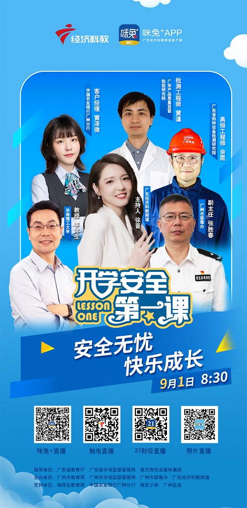 新学期预示着新的开始、新的希望,为帮助同学们安全快乐地投入到学习中,9月1日8点30分,省食品学会理事长、华南理工大学李汴生教授将与孩子们相约“开学安全第一课”,欢迎大家扫码观看。