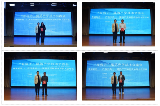 在技术交流会环节,四位行业专家带来精彩技术交流分享,包括华南理工大学建筑学院副院长、教授赵越喆专题报告《住宅建筑声环境问题刍议》;中国建筑科学研究院有限公司声学室主任正高级工程师闫国军专题报告《权威解读〈住宅项目规范〉(GB55038-2025)声环境条款》;广东省建筑科学研究院集团股份有限公司绿色低碳事业一部经理正高级工程师张昌佳专题报告《住宅隔声降噪关键问题及全过程服务》;广州声博士声学技术有限公司地产医疗事业部总监黄振华专题报告《声筑好房——全屋隔声降噪系统解决方案》。报告结束后,广东省土木建筑学会建筑物理与节能专业委员会主任委员周荃为四位专家颁发了荣誉证书,以感谢他们对本次会议的大力支持与专业贡献。