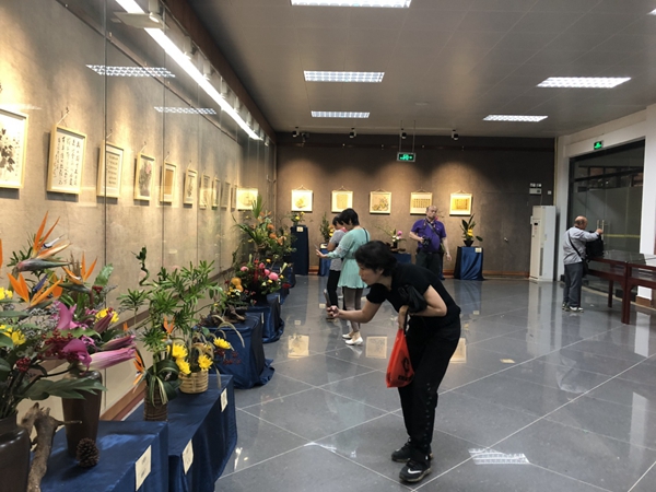 本次插花展邀请了广东园林学会插花艺术专业委员会的花艺艺术家们大施技艺,充分利用菊花的花型、习性等特点,通过技术和艺术加工,并结合多种材料,创作出50件各具特色、意韵悠长,且与咏菊书画展相协调统一的中国传统插花作品,体现出中国传统插花中崇尚自然、追求自然情趣的插花技法,其展现出来的花卉艺术之美也吸引了众多游客驻足观赏。