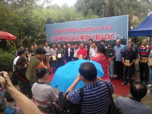 2013年9月30日,世界盆景友好联盟暨亚太盆景赏石2013年大会之广州分展场“中国岭南盆景观赏石精品展”在风景秀丽的广州流花湖公园东苑艺博馆隆重开幕。本次展览由世界盆景友好联盟、广州市林业和园林局、广东园林学会主办,广州市流花湖公园、广州盆景协会、广东省观赏石协会承办。国内外盆景赏石界的大师、专家、爱好者纷至沓来,济济一堂,互相学习观摩交流。世界盆景友好联盟主席胡运骅,广东园林学会理事长、原广东省政协副主席石安海,广州市林业和园林局副局长陈迅等领导和来宾出席了开幕式。