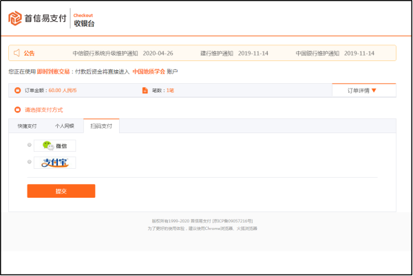 8、有三种付款方式,选一种自己方便付款的进行付款。