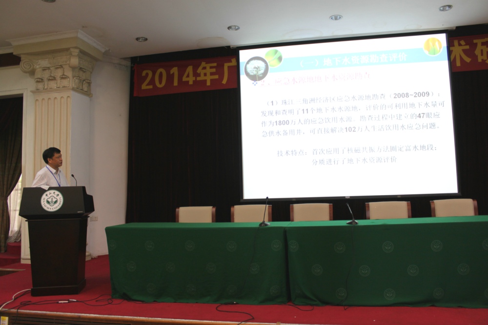 6月30日, 由广东省地质学会主办,广东省地质局及中山大学协办,广东省水文地质大队、广东省地质局第四地质大队、中山大学地球科学与地质工程学院、广东省地质学会水工环地质专委会等单位承办的“2014年广东水工环地质学术研讨会”在广州中山大学隆重召开。会议围绕“水工环地质与生态文明建设”主题,邀请大陆及香港知名专家就水工环地质相关问题作专题讲座,来自20多个地质勘查、科研机构和高等院校等单位的140多位代表参加了会议。广东省地质局副局长吴卫华、中山大学常务副书记、副校长陈春声出席会议并致辞,省地质学会副理事长、中山大学地球科学与地质工程学院院长张珂主持会议开幕式。