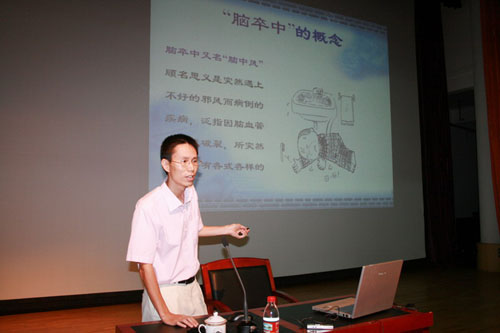 主讲嘉宾刘兴栋教授是广州中医药大学第一临床医学院温病学教研室兼(第一附属医院)四内科副主任,全国中医脑病专业委员会委员,广东省中医药学会热病、脑病专业委员会委员兼秘书。从事热病、脑病专科临床,教学,科研工作十多年,参与国家科技部十五攻关项目中风(脑梗塞)急性期综合治疗方案中风(脑出血)急性期综合治疗方案。刘兴栋教授以漫画结合故事的方式,为老年朋友们讲了一场生动的中风预防科普课。告诉老年朋友么,中风并不可怕,中风完全是可防可治的,平时注意留心自己身体的细微征兆,发病后积极配合治疗还是可以将损害降到最低的。刘教授的讲座激发了老同志们的极大兴趣,各位老年同志们纷纷抢“麦”向教授发问。