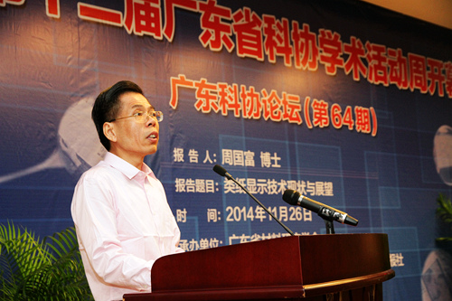 本届学术活动周开幕式专题报告暨第64期广东科协论坛由世界著名类纸显示技术专家周国富教授主讲,主题是“类纸显示技术现状与展望”。报告会由广东省科学技术协会主办,广东省材料研究学会承办,广东省科普志愿者协会协办;广东省材料研究学会秘书长戚文军主持报告会。
