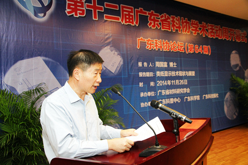 世界著名类纸显示技术专家周国富博士作报告(张炜哲 摄)