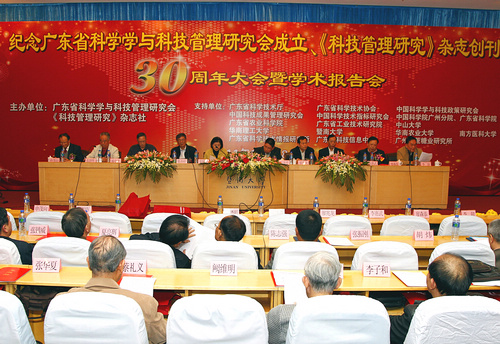 2011年12月28日下午,纪念广东省科学学与科技管理研究会(以下简称研究会)成立、《科技管理研究》杂志创刊30周年大会暨学术报告会在广州暨南大学曾宪梓科学馆举行。会议旨在回顾广东省科学学与科技管理研究会成立与会刊创刊30年来的风雨历程,总结30年来的工作成绩和经验,促进广东科技管理事业发展。研究会副理事长、省政府发展研究中心原副主任李超主持纪念大会。