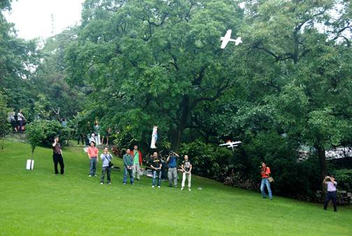 4日27日上午,广州白云山鸣春谷人头涌动、热闹非凡,蓝天上几架模型飞机的特技表演动作吸引了众人的目光。
