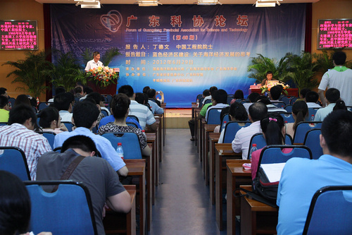 广东作为我国的海洋大省,自古以来临海而立、因海而兴,海洋不仅是广东经济社会快速发展的优势,更是广东未来发展的希望,在建设海洋强国的宏伟事业中具有举足轻重的地位。谁能占据海洋科学技术和经济建设的制高点,谁就能赢得未来经济发展的主导权。6月29日上午,我国著名海洋生态—环境科学与工程专家、中国工程院院士丁德文做客广东科协论坛第48期作题为“蓝色经济区建设:关于海洋经济发展的思考”专题报告。省科协委员、国家海洋局南海分局、省市直有关部门和地市科协、广州部分高校师生、科技工作者约300人聆听了丁院士的精彩报告。