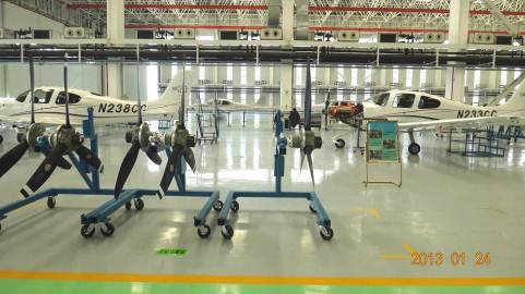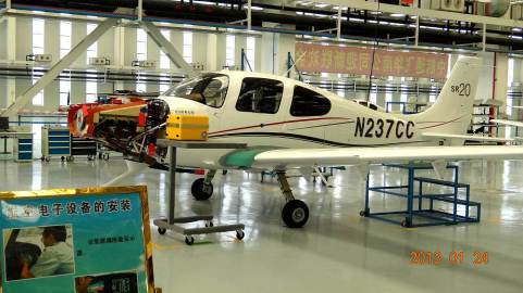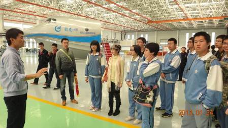 最吸引眼球的是中航通飞的生产车间——飞机总装线。西锐SR20呈现在总装线上。师生们了解了飞机的完整装配过程,从机身开始→主翼安装→平尾安装→飞行控制系统安装→发动机安装→航空电子设备安装→螺旋桨安装→全机检查清洁→完成总装。