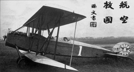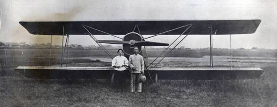 孙中山以宋庆龄的英文名“乐士文”(Rosamonde)命名这架飞机并合影留念。